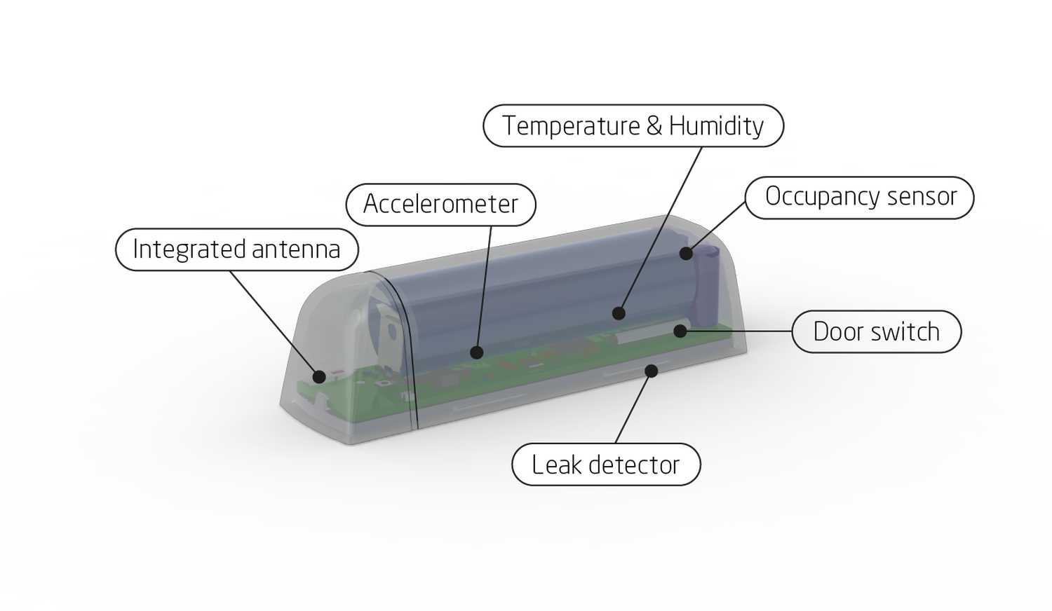 Dies ist ein LoRaWAN®-Raumsensor für Innenräume zur Messung der Innenraumumgebung, der Anzahl der Öffnungen an einer Tür oder vielleicht, ob sich etwas bewegt hat oder nicht. Er verfügt auch über einen Wasserleckdetektor, wodurch er sich ideal für die Montage z. B. unter einer Spülmaschine eignet. Mit seiner geringen Größe und seinem minimalistischen Design ist er perfekt für die Montage an Türrahmen, Fensterscheiben oder anderen begrenzten Oberflächen geeignet. Wenn Sie einen diskret aussehenden Sensor mit einem breiten Anwendungsbereich benötigen, ist EMS der Richtige für Sie.