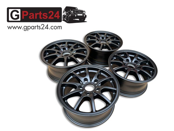 Sie erhalten hier von uns einen neuen Satz 4 Stück Original Mercedes G-Klasse 16 Zoll Felgen BR464 Militär in Schwarz mit ET43.