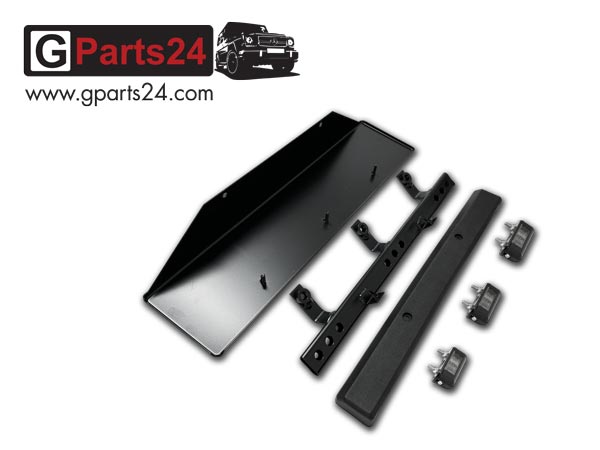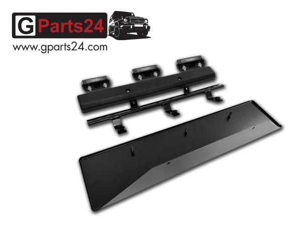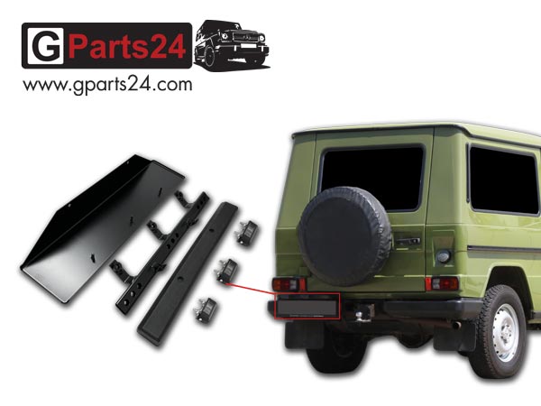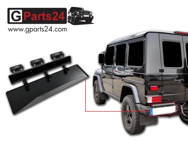 GPARTS24 hat ebenso den Kennzeichenhalter (A4638851333) für alle G-Modelle ab 1996 – 2014 mit Stahlstoßstange und auch den G-Professional Kennzeichenhalter, der oben an der Heckklappe montiert wird, sowie den klappbaren Kennzeichenhalter für die w463 Zugmaulstoßstange im Programm.