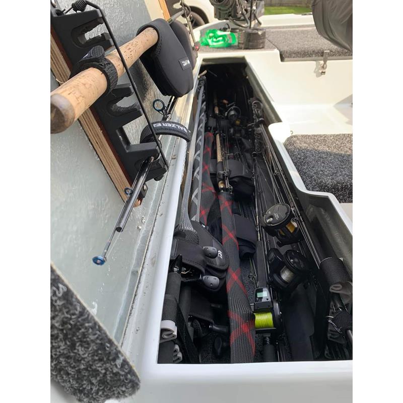 Die Frontfläche von diesem Bootsmodell eignet sich sehr gut, um eine elektronische Ankerwinde, oder einen Bugmotor aufzubauen und selbst einfach zu montieren. Sie können dabei auch einfach selbst die jeweiligen Kabel einziehen, da es Verbindungen vom Heck zur Front gibt. Ebenfalls sind durch die zahlreichen leicht zugänglichen Staufächer Komponenten wie Badeleiter, Rutenhalter usw. leicht für Jedermann zu montieren. Durch das länglich eingebaute Staufach (geht von Staufach bis ganz an die Front vom Boot) kann man ohne weiteres E-Motor; Angelruten, Sonnendach, Paddel usw. verstauen und es wird garantiert keine Angelrute mehr im Weg liegen!