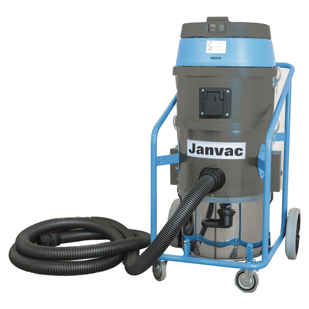 3300 Watt sorgen für große Saugleistung, Janvac 3600-H. Zum Anschluss an leistungsstarke Schleif-und Fräsmaschinen.