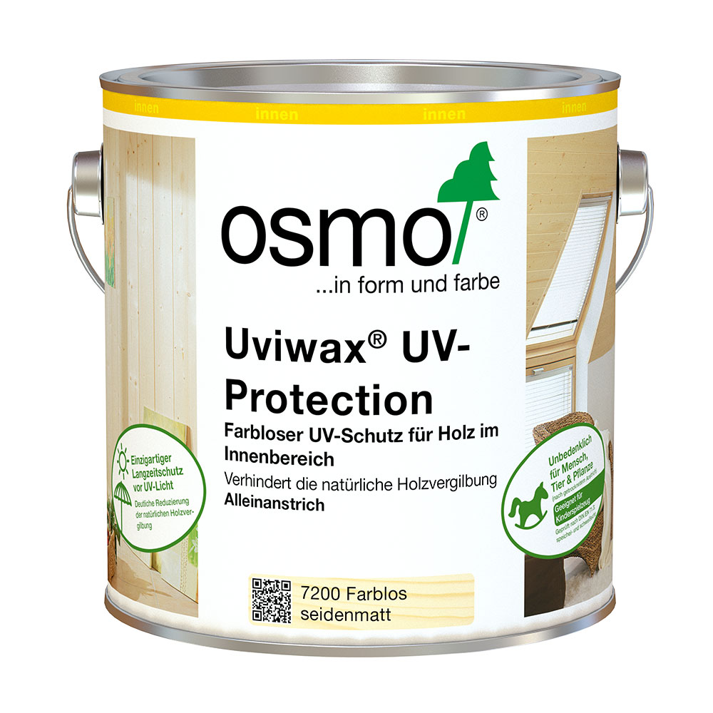Damit können Sie unbehandeltes Holz vor UV-Strahlung schützen und Schnittstellen nachstreichen. Uviwax ist eine farblose Holzveredelung, mit der Profilholz und Leisten aus Fichte bereits werkseitig endbehandelt werden.