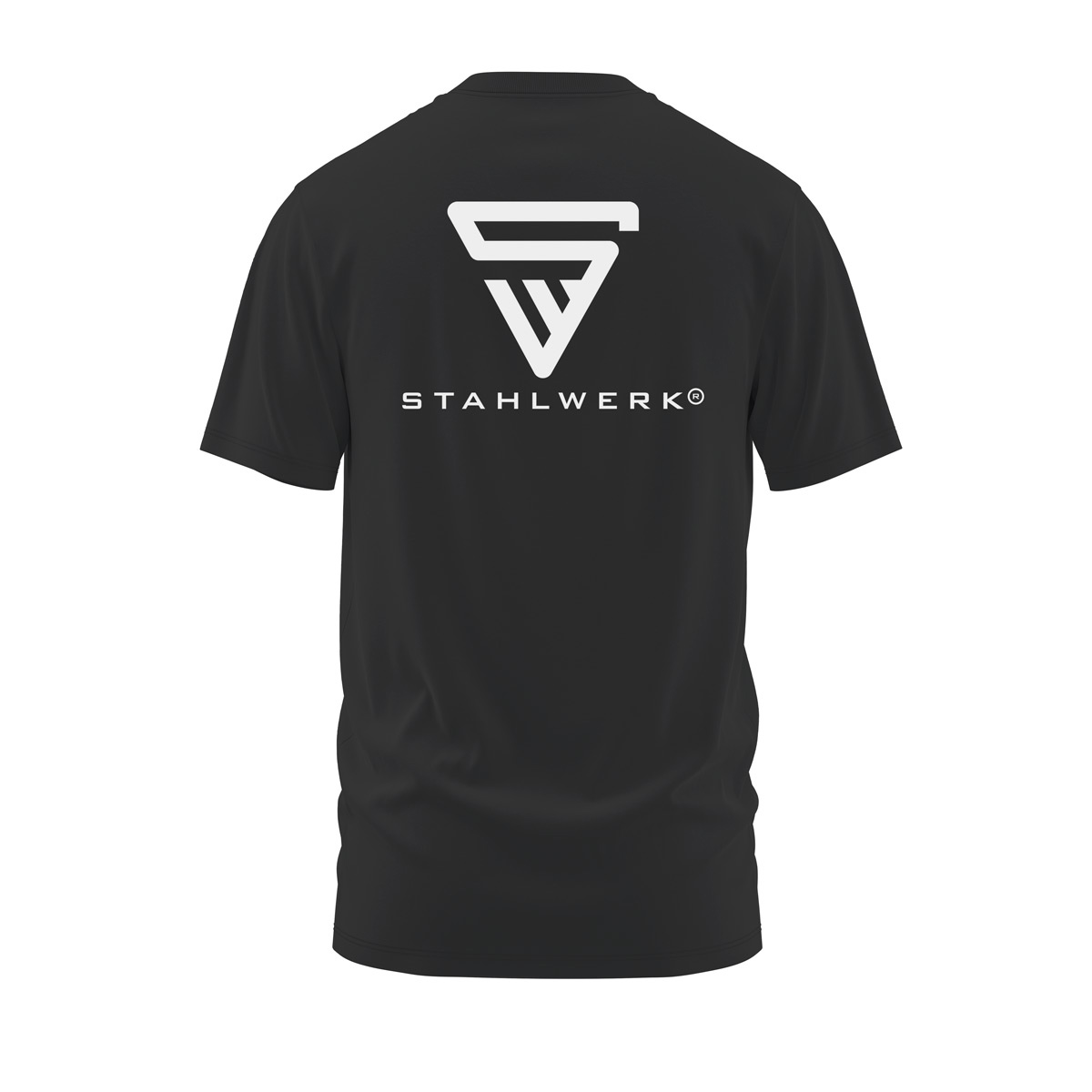 Schreibe die erste Bewertung für „STAHLWERK T-Shirt Schwarz Größe M Kurzarm-Hemd mit Logo-Print 100% Baumwolle“