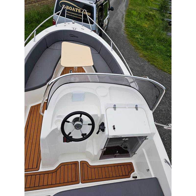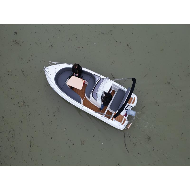 Das Cockpit ist bei Regenwasser selbstlenzend, wodurch tiefgelegene Rinnen das anfallende Wasser selbst abfließen lassen, genauso wie im Bereich der Motorhalterung und der Ankerkasten an der Front. Besuchen Sie Ihr Boot für einen längeren Zeitraum nicht, oder sucht Sie eine regnerische Wolke auf, so kann dieses anfallende Wasser also ganz von alleine selbst abrinne. Die umfangreich ausgestattete Standartausrüstung lässt kaum mehr etwas zu wünschen übrig und bietet im gesamten ein TOP – Preis-Leistungsverhältnis.