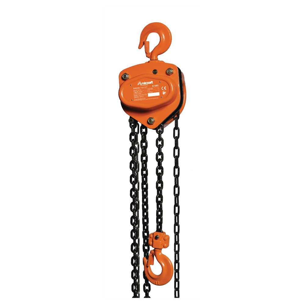 Erhöhter Wirkungsgrad und Reduzierung der Reibungsverluste durch gehärtete Zahnräder und Ritzel auf Rollenlagern. Gesenkgeschmiedete, drehbare Last- und Aufhängehaken mit Sicherung. Verzinkte Lastkette nach DIN ISO 3077.